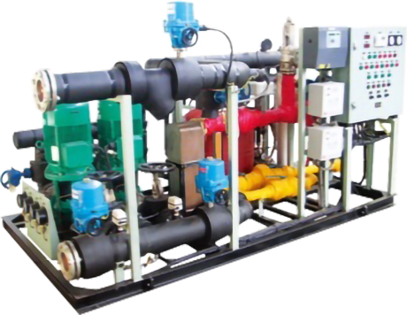 船用定壓裝置是將船舶中央空調循環冷(熱)媒水系統中的換熱、冷(熱)水循環、定壓、排氣、補水、過濾、水處理及電氣控制等諸多功能集于一身的成套組裝式船用設備。裝置由采暖換熱裝置(板式換熱器)、蒸汽流量調節閥組、疏水閥組、定壓膨脹隔膜罐、自動排氣裝置、壓差控制器、補水隔離裝置、離子水處理器、及電動、手動閥件和控制單元等組成。