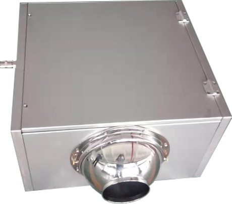 誘導通風裝置適用于機庫和車輛庫等各類高大空間艙室使用,通過高壓風機吸入艙室空氣,經風機加壓后,以射流的型式送入艙室,誘導艙室周圍滯留空氣,以實現強化艙室氣流組織,消除艙室通風死角,提高艙室通風效率的功能。